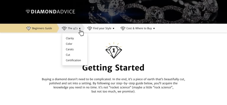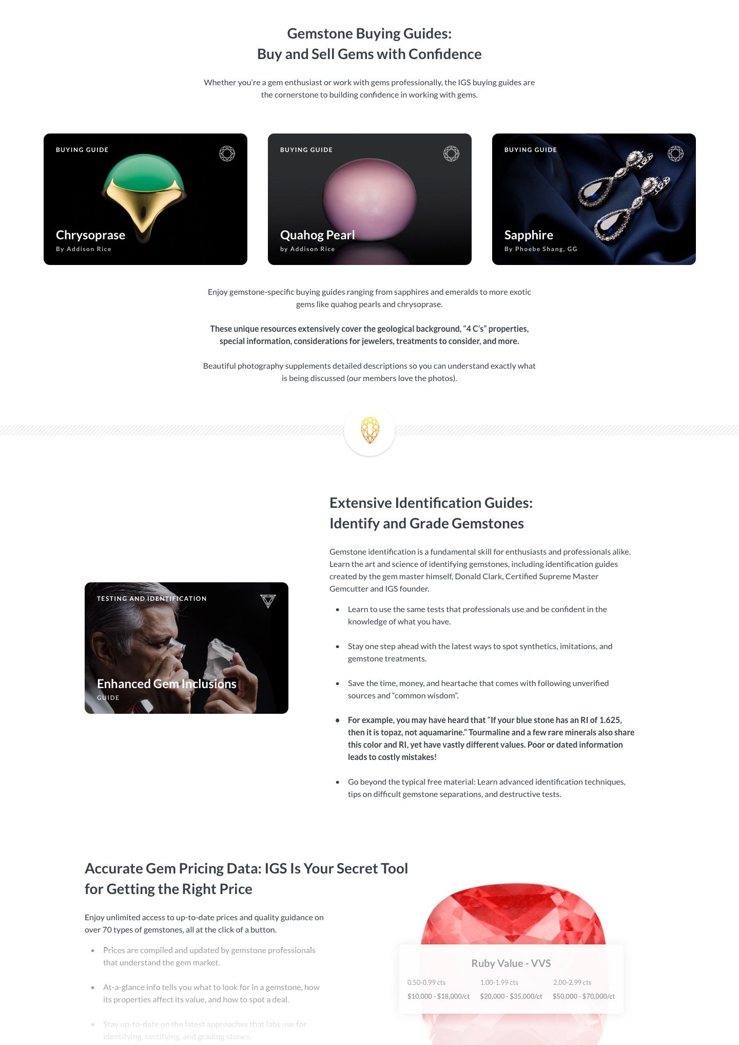 IGS recognized that they were attracting significant traffic from individuals seeking diamond buying advice. Leveraging their strong reputation as an authority on gems, they chose to capitalize on this opportunity by adding a new section to their website dedicated entirely to the diamond buying process.