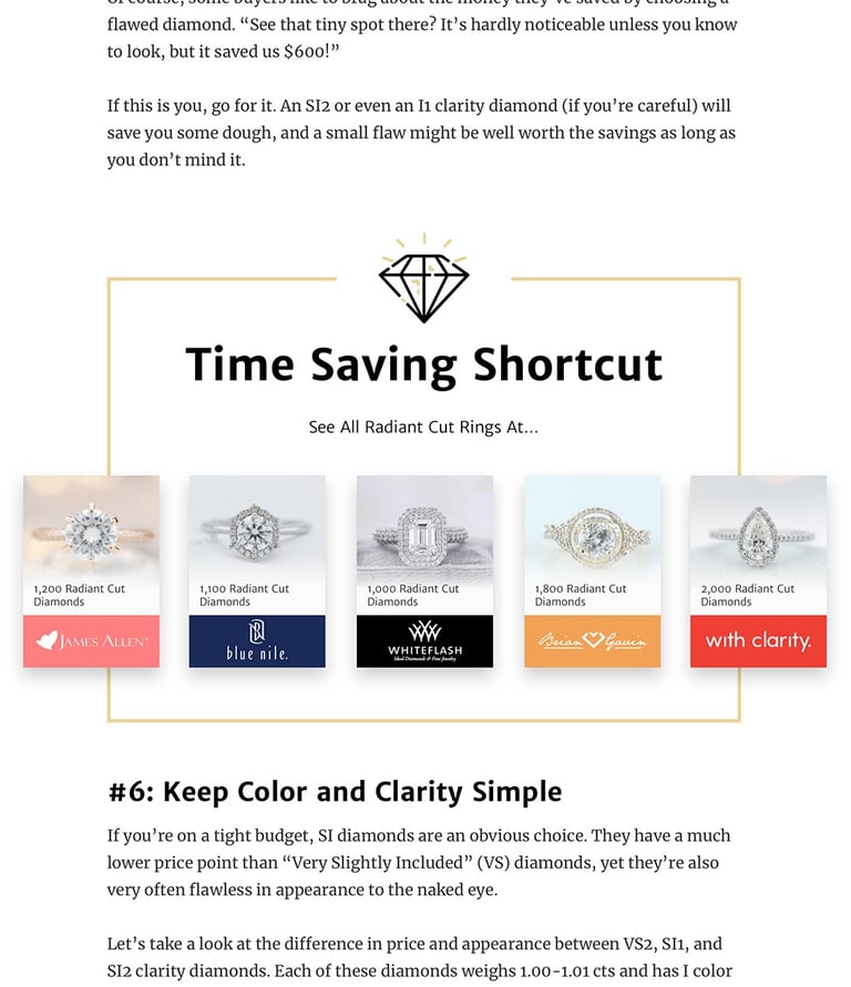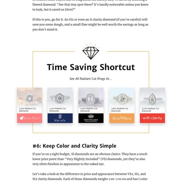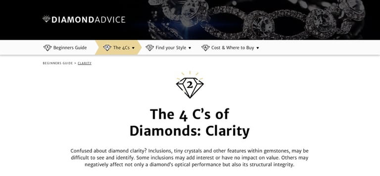 To ensure Diamond Buying Advice had a unique appeal, the design of the articles—referred to as information modules—had to be distinct from the style used on the main site.