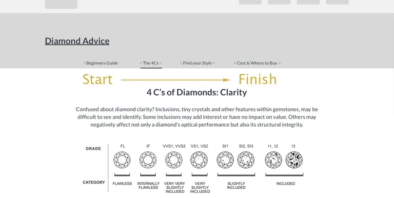 The sub-section was named "Diamond Buying Advice," maintaining its focus as a user guide. Since the primary user persona was a learner, the most effective approach was to lead the user through a step-by-step scenario.