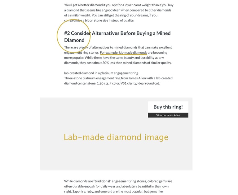 This section aimed to welcome newcomers to the world of diamonds and guide them toward clicking on affiliate links, ultimately generating revenue for IGS.