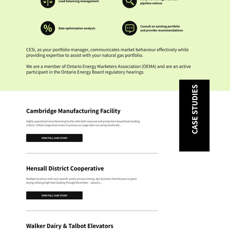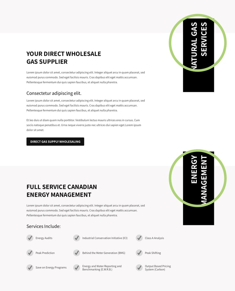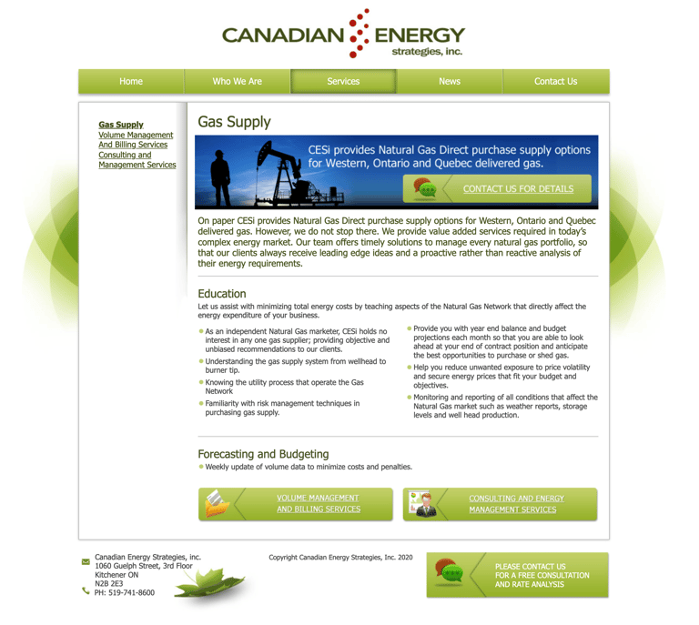 The first challenge arose when trying to compile and understand the full range of services offered by the client. The outdated website presented a list of services that fell into three different categories: Gas Supply, Volume Management, and Consulting & Management.